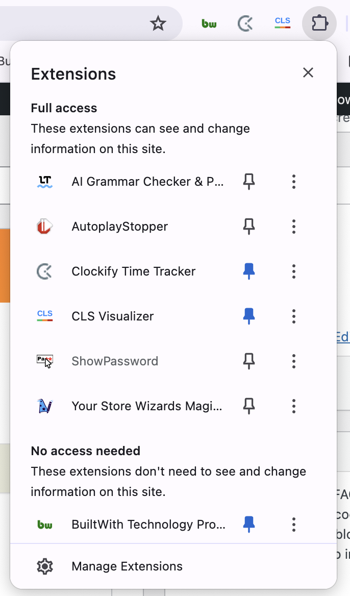 Magic Edit is a Chrome extension developed by Your Store Wizards that streamlines eCommerce store management by bringing quick-edit functionality directly to your storefront. Instead of navigating through multiple admin panels or remembering complex URLs, Magic Edit detects which platform you're using and provides one-click access to editing tools, admin sections, and testing utilities.