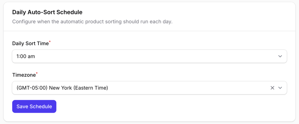 From the Magic Sorter dashboard, locate the Daily Auto-Sort Schedule box: